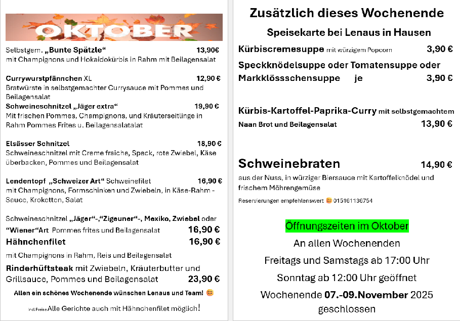 Oktober 2025 jedes Wochenende geöffnet!