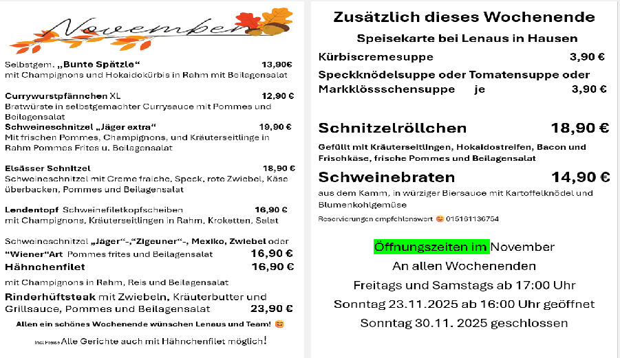 November 2025 jedes Wochenende Freitags und Samstags geöffnet!