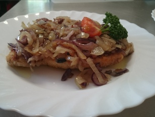 Paniert mit Zitronenscheibe ………………………………….……….…. 12,90 €